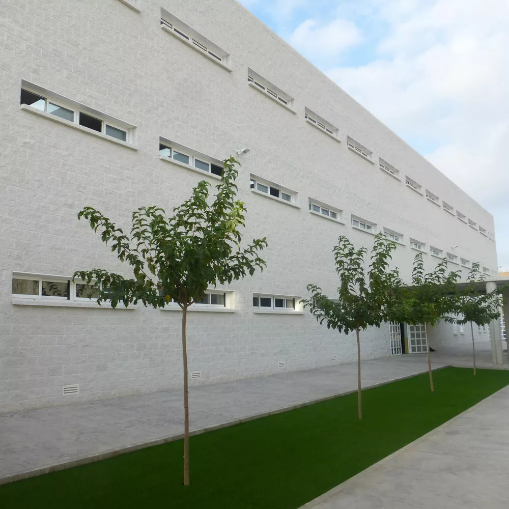 El Colegio se dispone en tres bloques prismáticos, que albergan cada uno de ellos los espacios destinados básicamente a Educación Infantil el primero (modulo C), Educación Primaria y Servicios Administrativos generales el segundo (módulo B) y bloque de Gimnasio, usos múltiples, comedor y dependencias auxiliares el tercero. (Bloque A). Otras obras que se contemplan en el presente proyecto, son: la construcción de dos pistas polideportivas, reserva de espacio para la dotación de 22 plazas de aparcamiento, cuatro de ellas con dimensiones y características necesaria para uso de personas con discapacidad, el vallado perimetral de la parcela y la urbanización de la parcela interior.